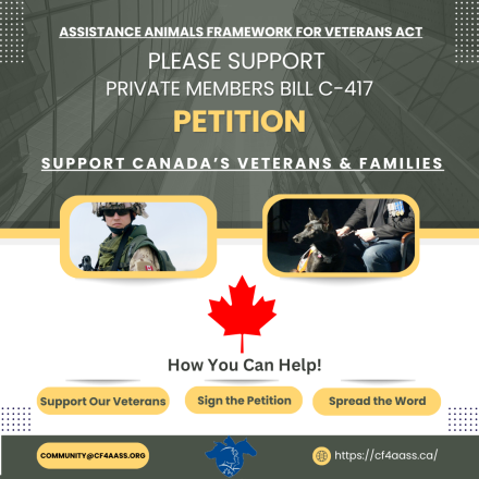 Information Concerning Canada's First Voluntary National Standard of Canada {NSC} for Animal-Assisted Human Services referenced in the Petition and Private Members Bill C-417 can be viewed and downloaded by clicking the enclosed links.